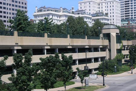 [3] Parking structures shall be designed such that sloping circulation bays are internal to the structure and not expressed in the exterior treatment of the parking structure.